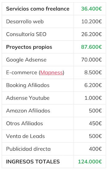 Aún así, no ha sido un mal año en lo económico, porque entre mis servicios como freelance y mis proyectos he generado más de 100.000€ por séptimo año consecutivo.