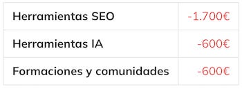 La partida de herramientas no es para herramientas de SEO propiamente, sino para herramientas específicas que necesito para este tipo de webs.