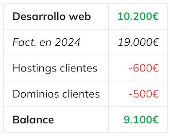 Le he metido 250€ de costes porque este proyecto lo tengo compartido con un socio.