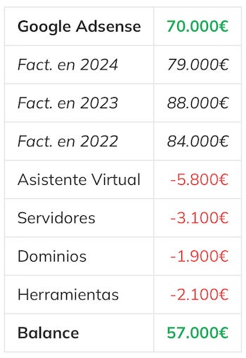 Unos 150€ vienen del proyecto anterior del blog + Youtube Faceless. El resto viene de otros blogs que conservo, más muertos que vivos porque los tengo abandonados y sin intención de retomarlos.