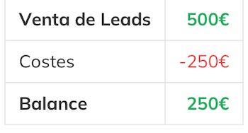 Los 500€ son de 1 solo lead cerrado. Es sector finanzas y se manejan importes altos, de ahí que la comisión recibida sea tan alta.