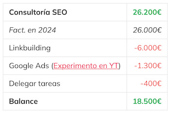 Disclaimer: todos los importes que menciono son sin IVA. La base imponible del ingreso o del gasto y ya.
